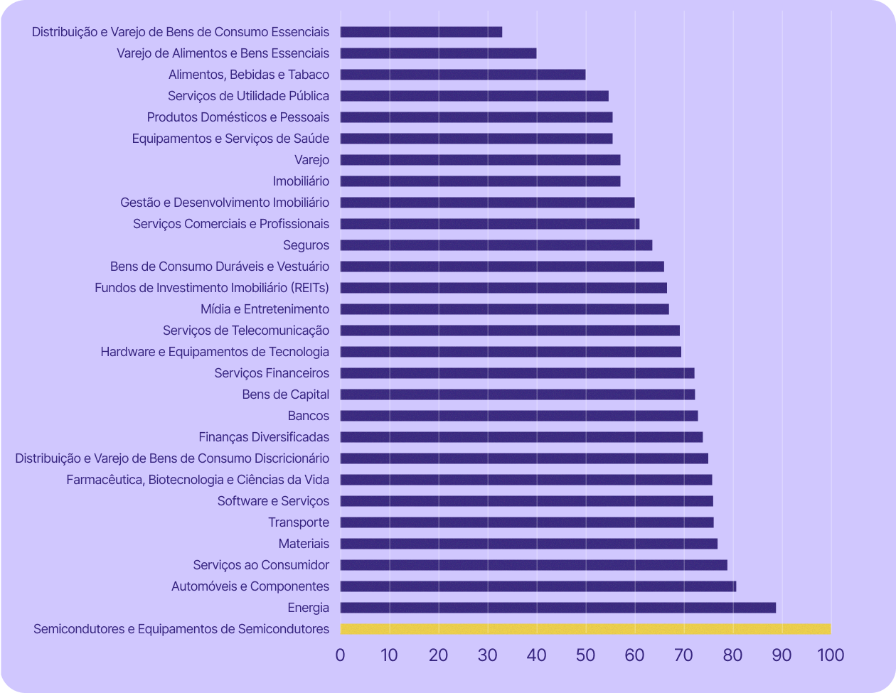 Dependência das empresas da tecnologia dos EUA por setor